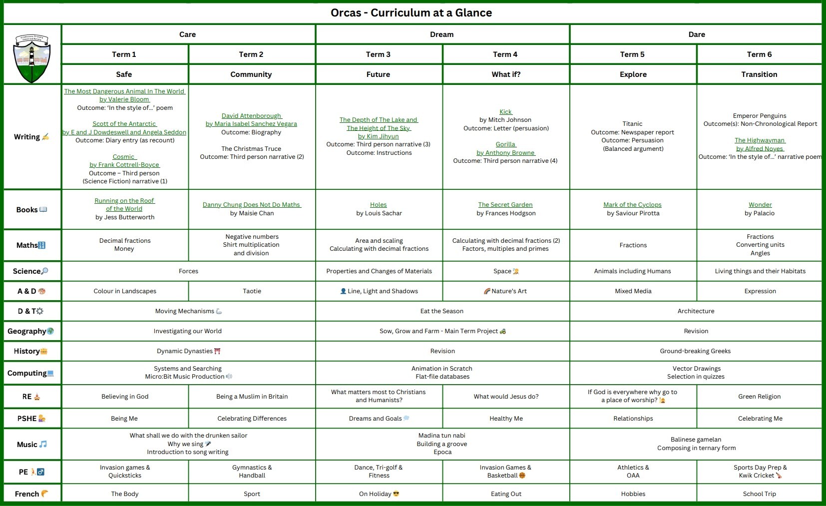 Orcas Class Orcas Autumn Newsletter Orcas Spring Newsletter Orcas Curriculum at a Glance PE Lesson Schedule for Term 3 Maths Resources