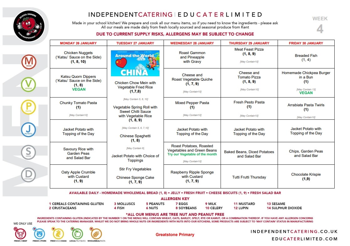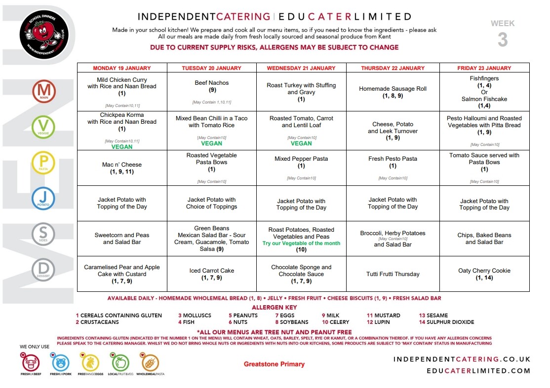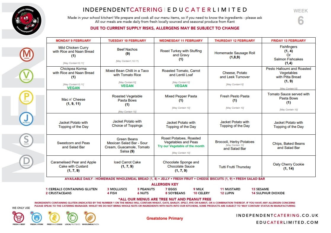 Our school meals are cooked by the kitchen team working for Independent Catering. The current cost of a school dinner is £2.60 per pupil per day. If your child is having a school meal, it is important that payment is made in advance.  Payment can be made via Arbor, our online payment portal, using your unique login details.  Your unique login details can we obtained from the School Office.  Unfortunately, we are unable to accept cash, cheque or card payments.